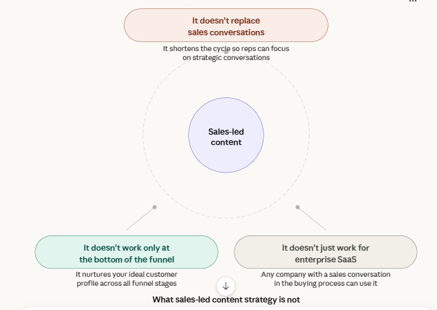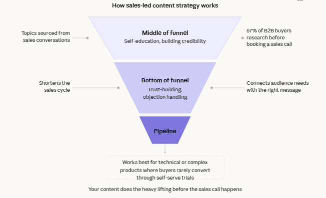 It doesn’t just work for enterprise SaaS: Though sales-led content strategy is mostly associated with enterprise SaaS, the underlying logic still applies to any company where a sales conversation is part of the buying process. A mid-market SaaS startup with a 30-day sales cycle still has discovery calls, faces objections, and needs content that helps reps move deals forward. Even though the scale is different, the approach remains the same.