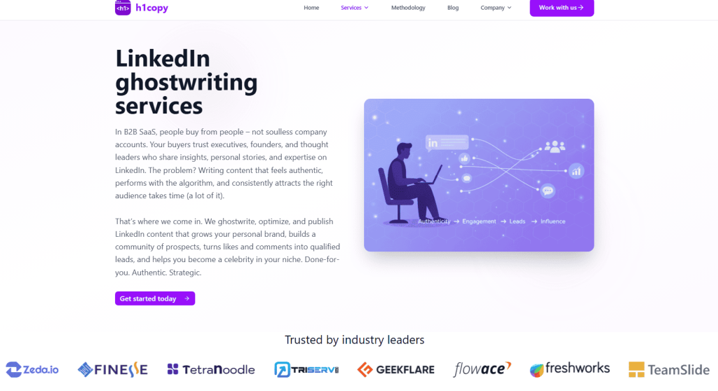 For example, an agency like h1copy, which specializes in B2B SaaS and tech, approaches LinkedIn ghostwriting as a strategic growth channel — not just a writing service.